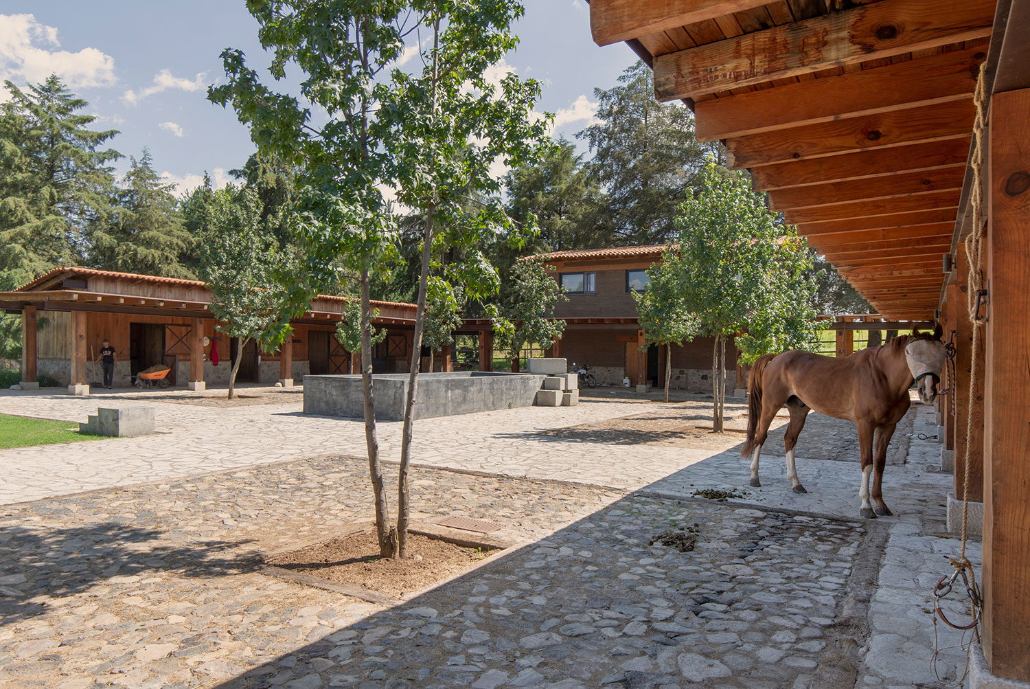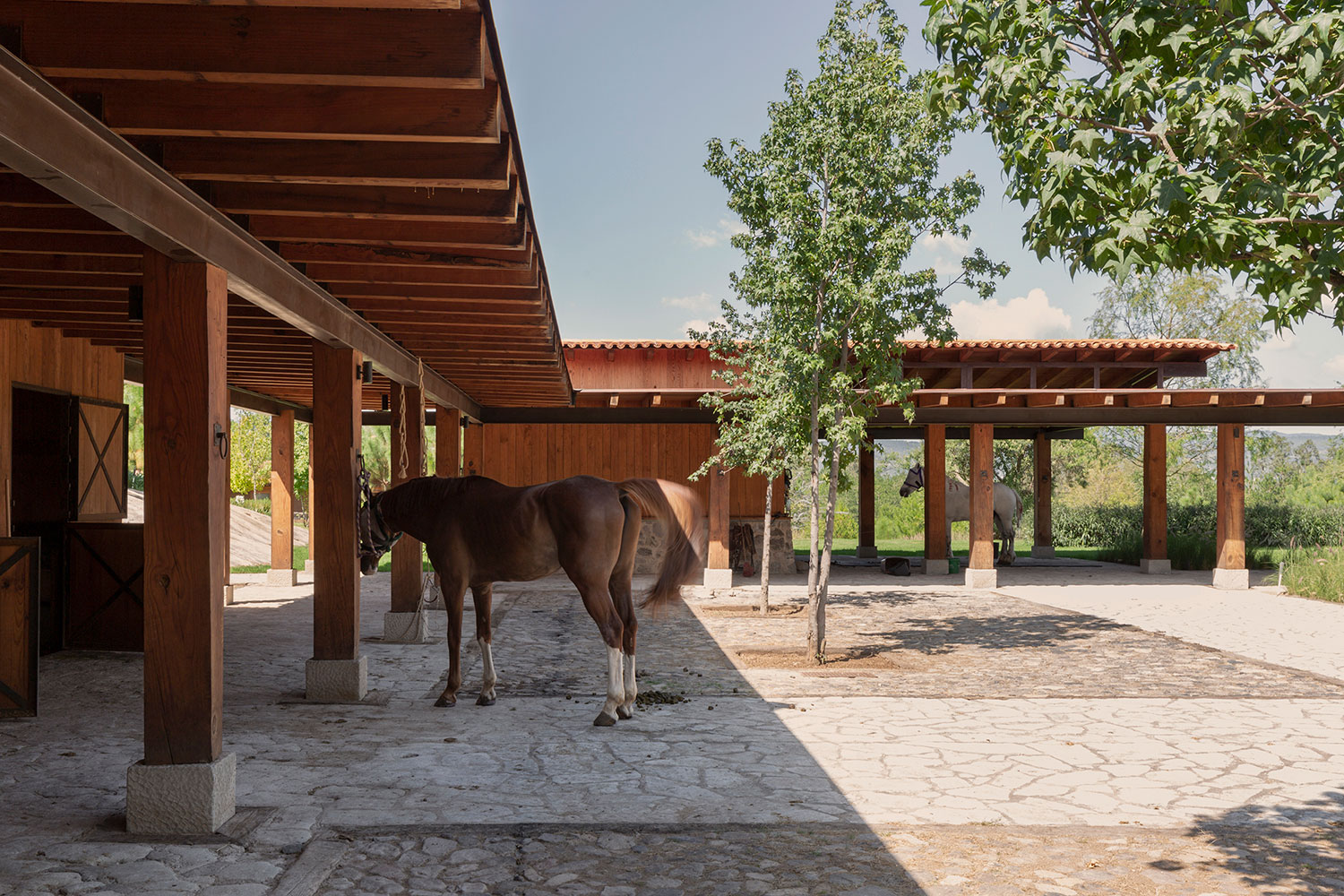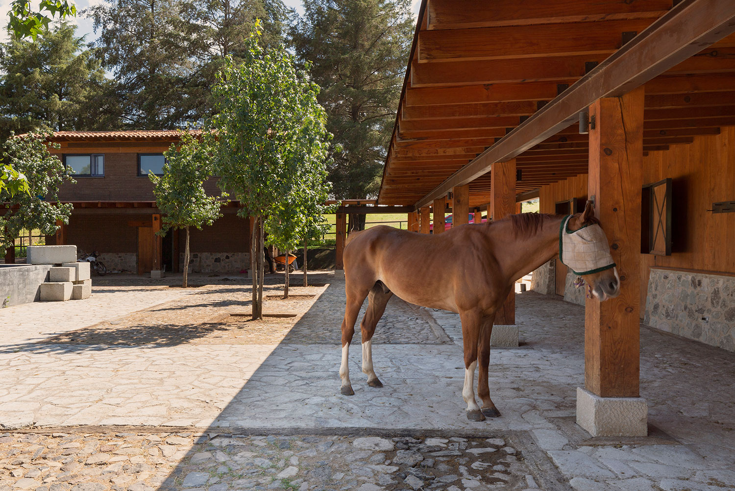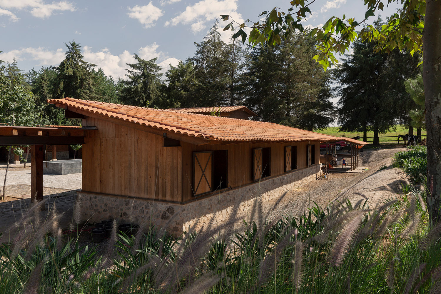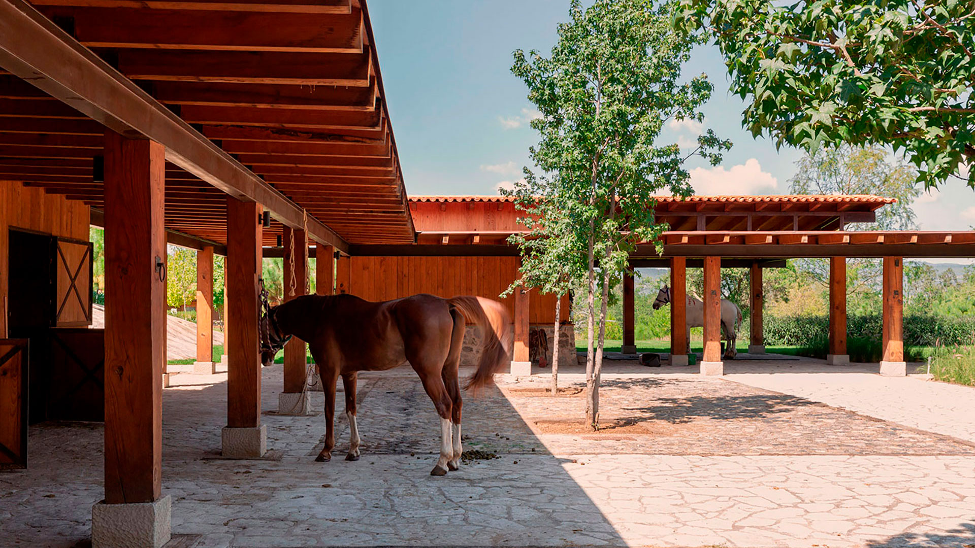 Las caballerizas en Tapalpa destacan por su diseño funcional y estético, integrando materiales naturales y tradicionales. Las estructuras de madera y piedra se combinan armoniosamente, proporcionando un entorno cálido y robusto para los caballos.