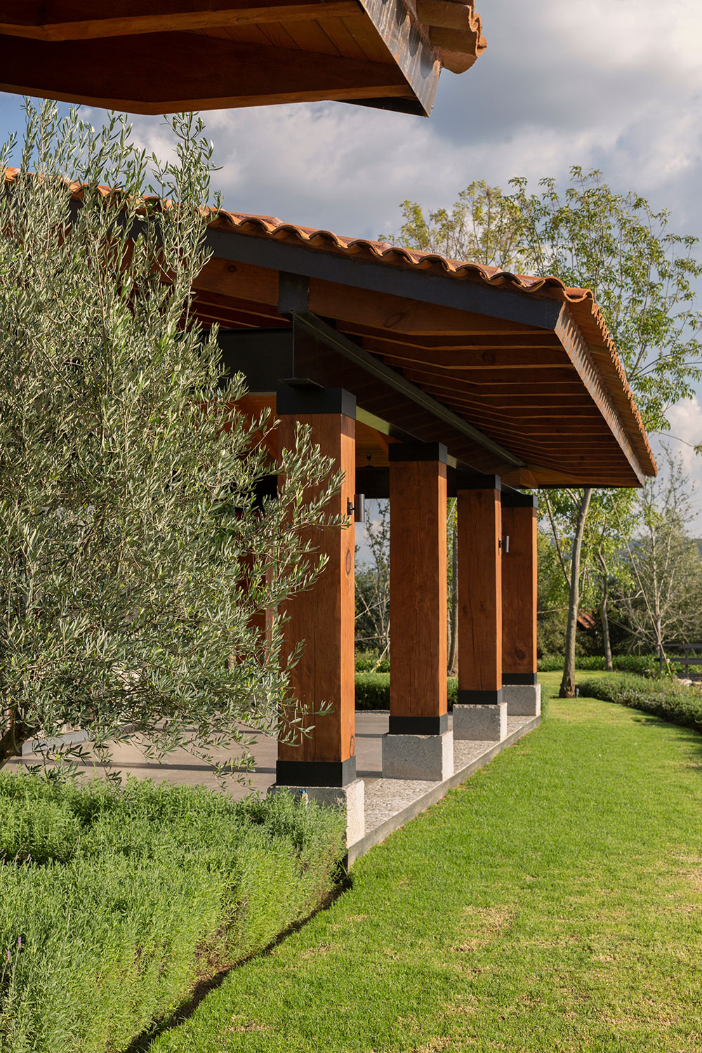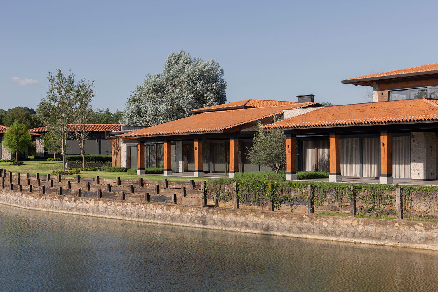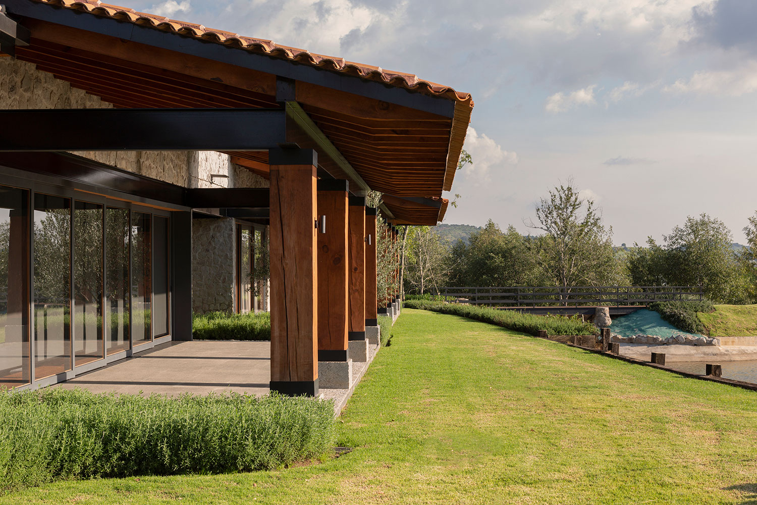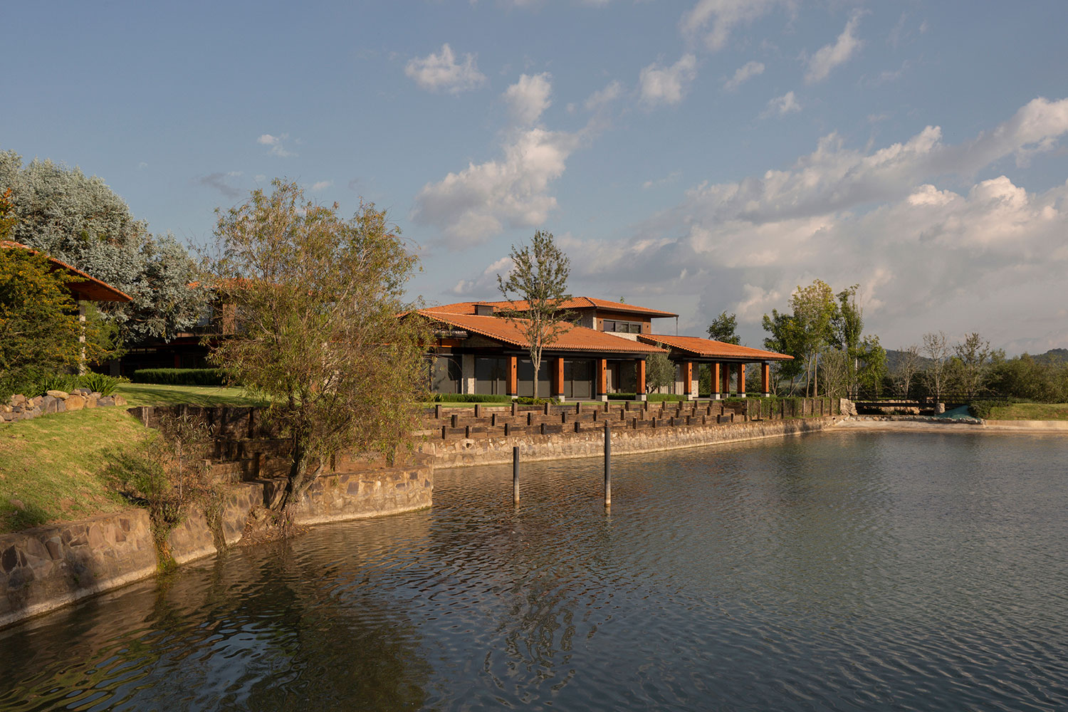 Casa FR está ubicada en el Rancho El Poleo, un terreno destacado por un jagüey que se convirtió en el eje central del proyecto. Pay Ochoa diseñó la casa tipo hacienda, integrando las habitaciones y las áreas comunes alrededor del lago, permitiendo que todos los espacios disfruten de vistas al agua.