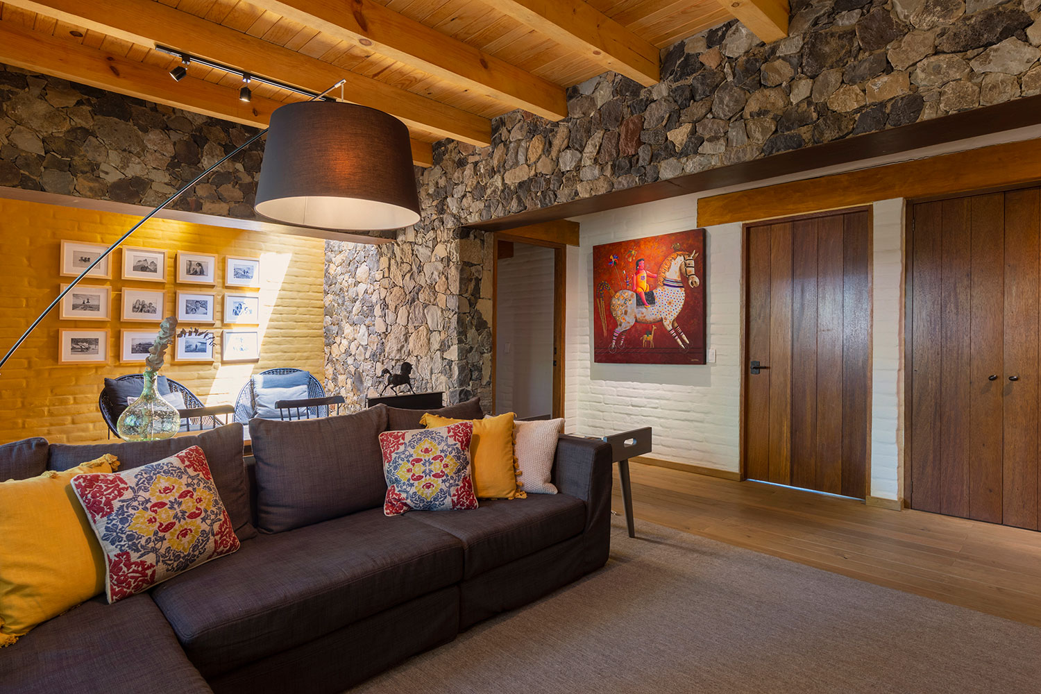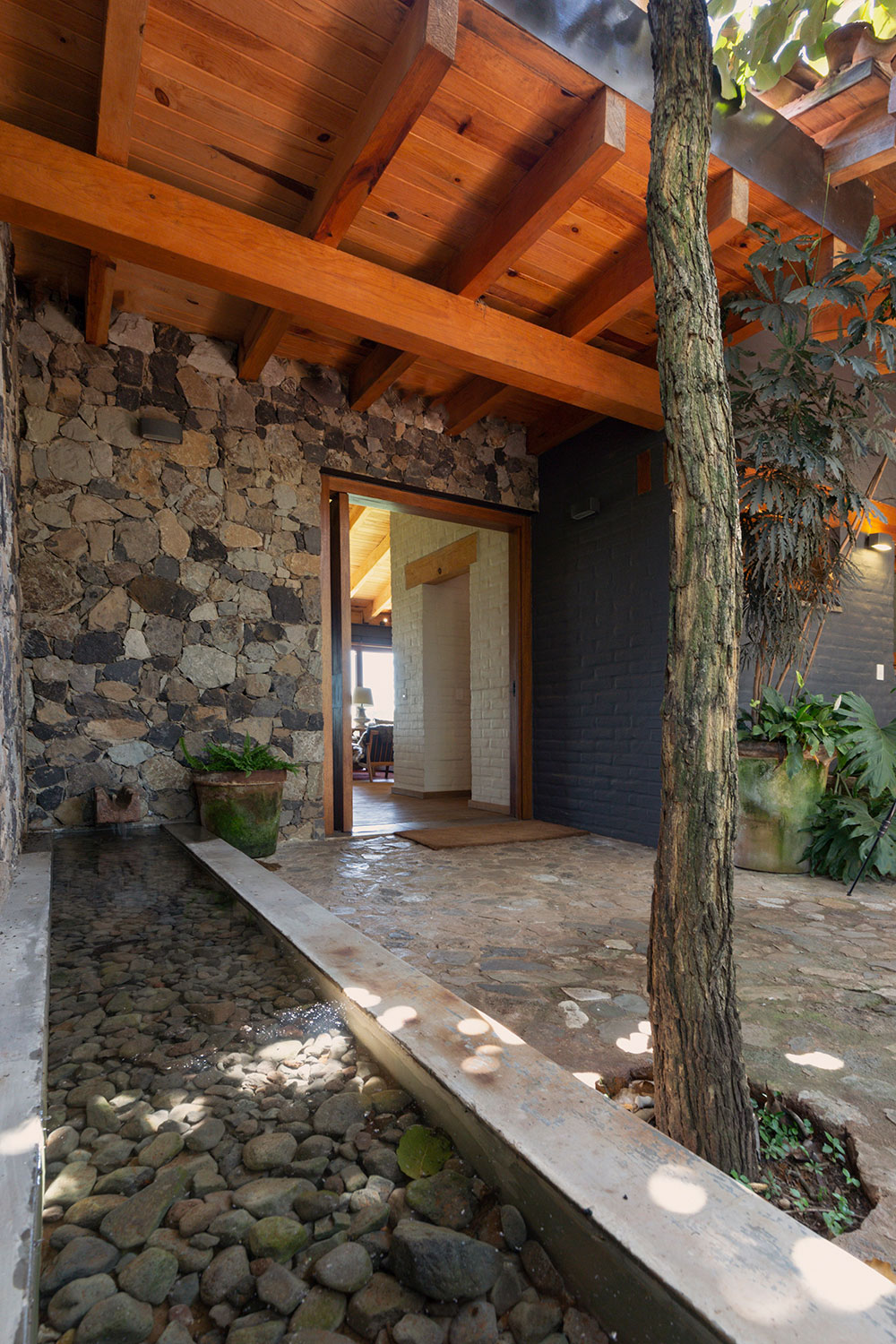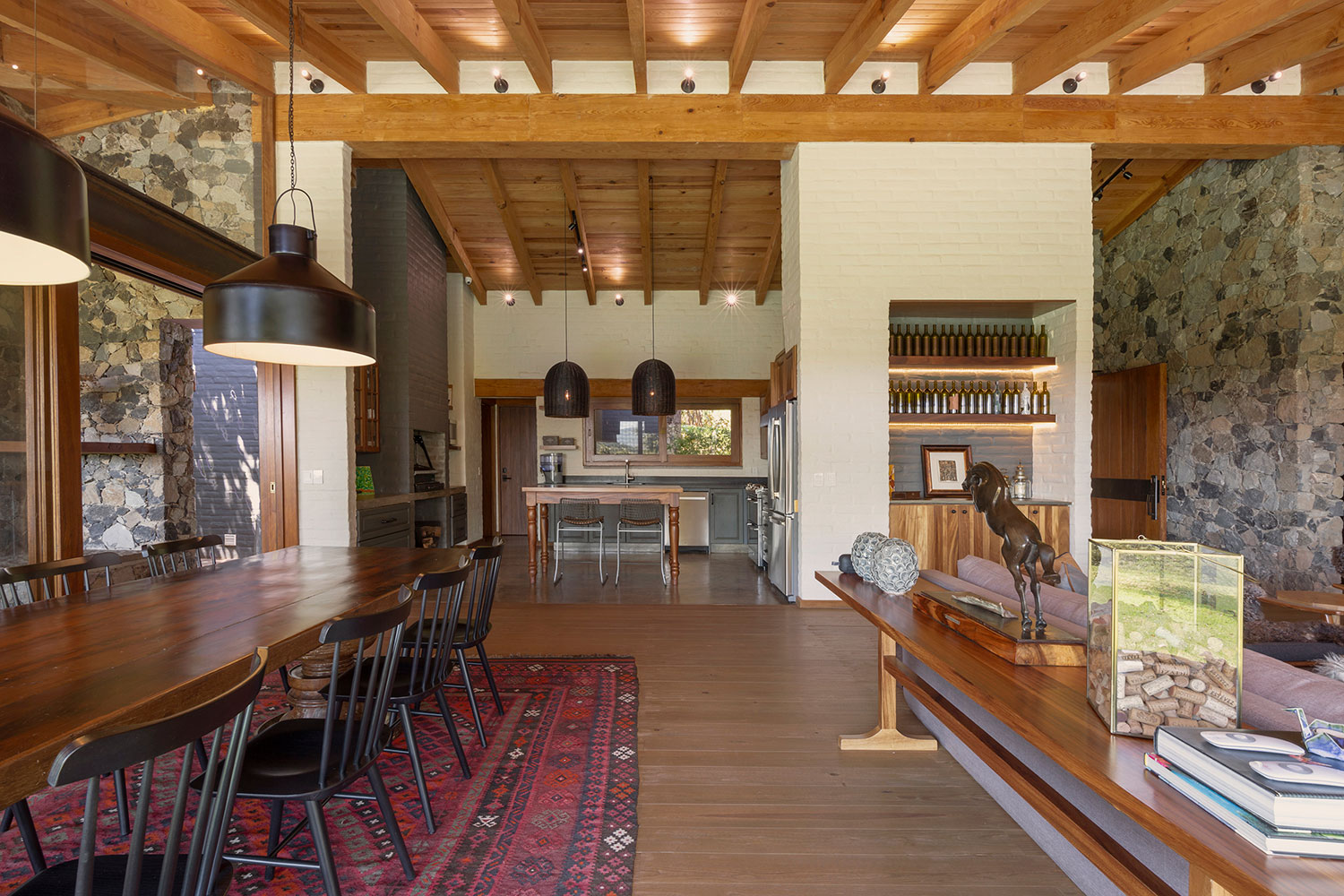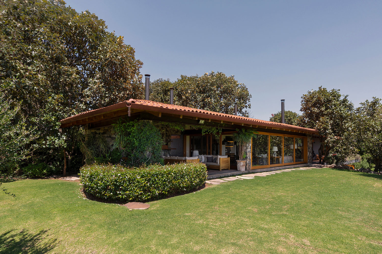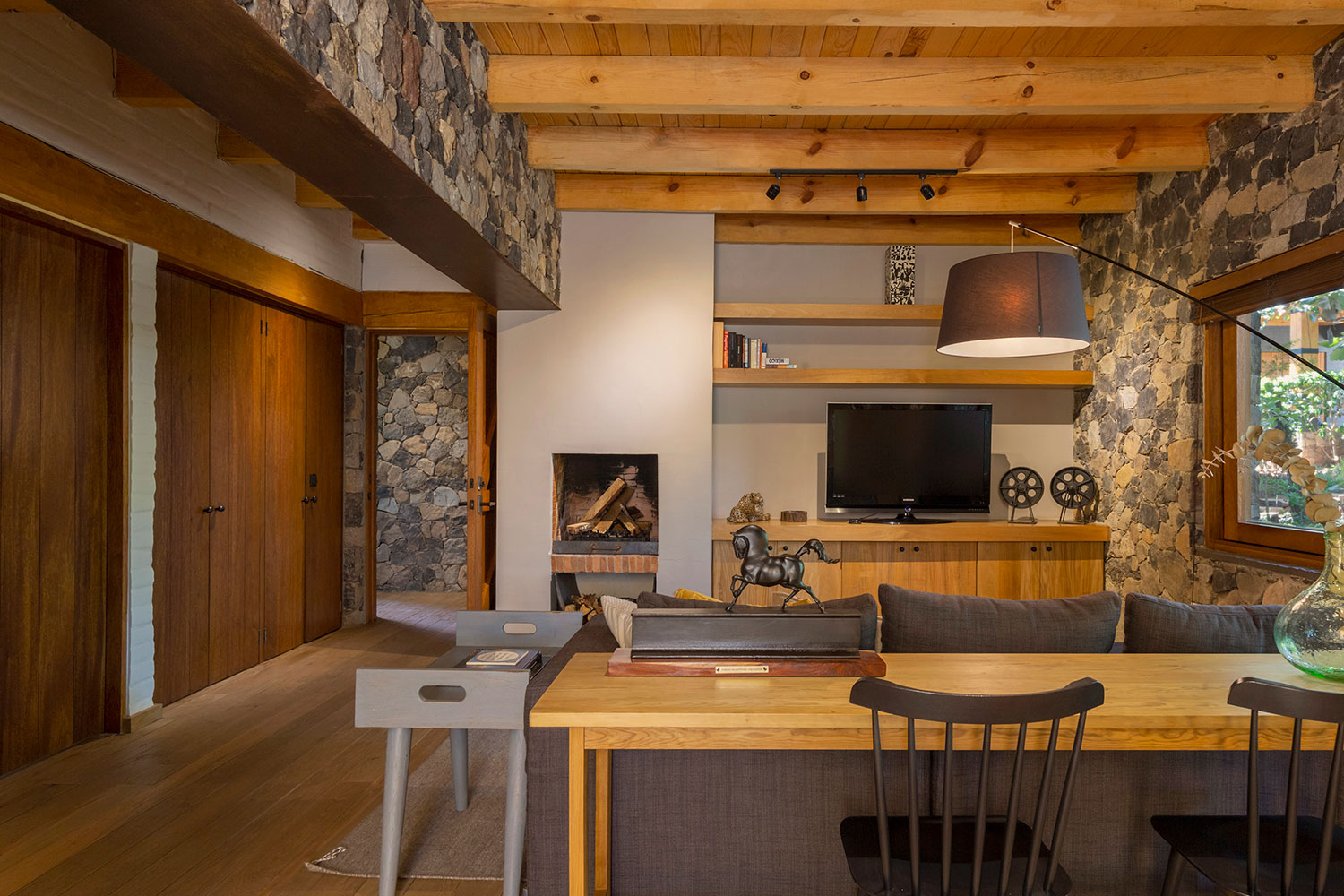 Ubicación: La Oscurana La Oscurana es un terreno elegido por su vista al volcán, al Nevado de Colima, los bosques circundantes y el valle que rodea la presa. Esta ubicación única inspiró el diseño de Casa GB, asegurando que las habitaciones principales y las áreas comunes maximicen estas vistas impresionantes. El diseño se centra en integrar la casa con su entorno natural, permitiendo que la belleza del paisaje se convierta en una parte integral de la experiencia diaria de los residentes. La orientación de la casa permite disfrutar de las vistas panorámicas desde casi todos los rincones, creando una conexión constante con la naturaleza. La decoración interior complementa este enfoque, ofreciendo un ambiente elegante y acogedor que se alinea con la serenidad del entorno exterior. La combinación de materiales y colores se ha seleccionado cuidadosamente para armonizar con el paisaje, creando una sensación de cohesión y tranquilidad. Casa GB es un testimonio del compromiso de Pay con la creación de espacios que no solo son funcionales y estéticamente agradables, sino también profundamente conectados con su entorno natural. CASA GB
