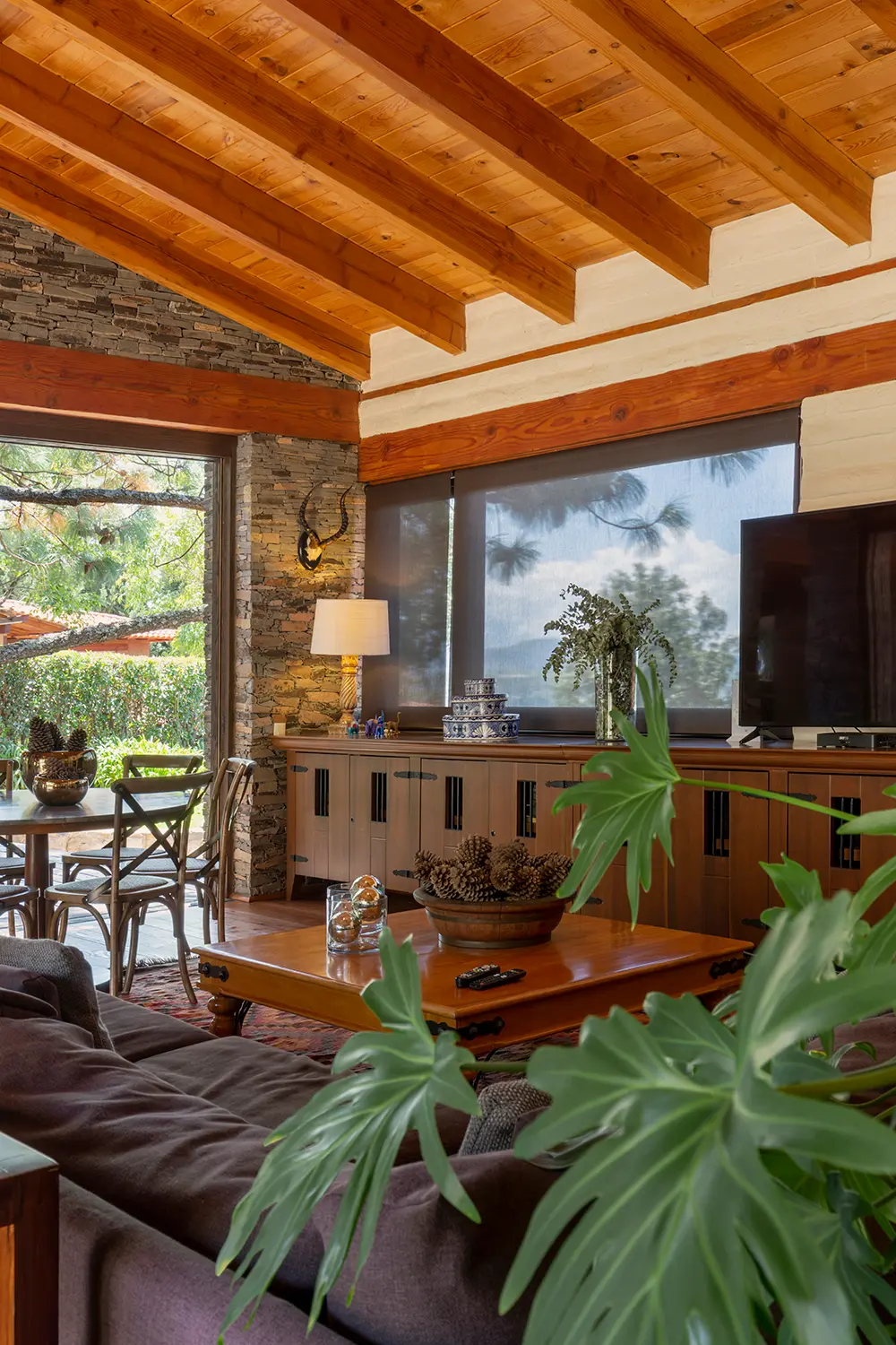 Ubicación: Fraccionamiento De la Cruz Este terreno, situado en una colina dentro del pueblo de Tapalpa, ofrece una vista espectacular del pueblo, los bosques que rodean el valle, la presa más adelante, y el volcán y nevado al fondo. Desde este fraccionamiento, se puede bajar caminando a la plaza, disfrutando de atardeceres naranjas increíbles. Casa A es una residencia acogedora diseñada para maximizar estas vistas. Las habitaciones y áreas comunes están orientadas hacia el paisaje, permitiendo que los residentes disfruten de la tranquilidad que ofrecen las vistas panorámicas. La decoración interior crea un ambiente cálido y elegante, complementando la serenidad del entorno exterior. El paisajismo añade un toque natural que armoniza perfectamente con la arquitectura de la casa. Este proyecto es un ejemplo de cómo un diseño bien pensado puede convertir un terreno excepcional en un hogar que ofrece una conexión constante con la belleza del entorno. CASA HA