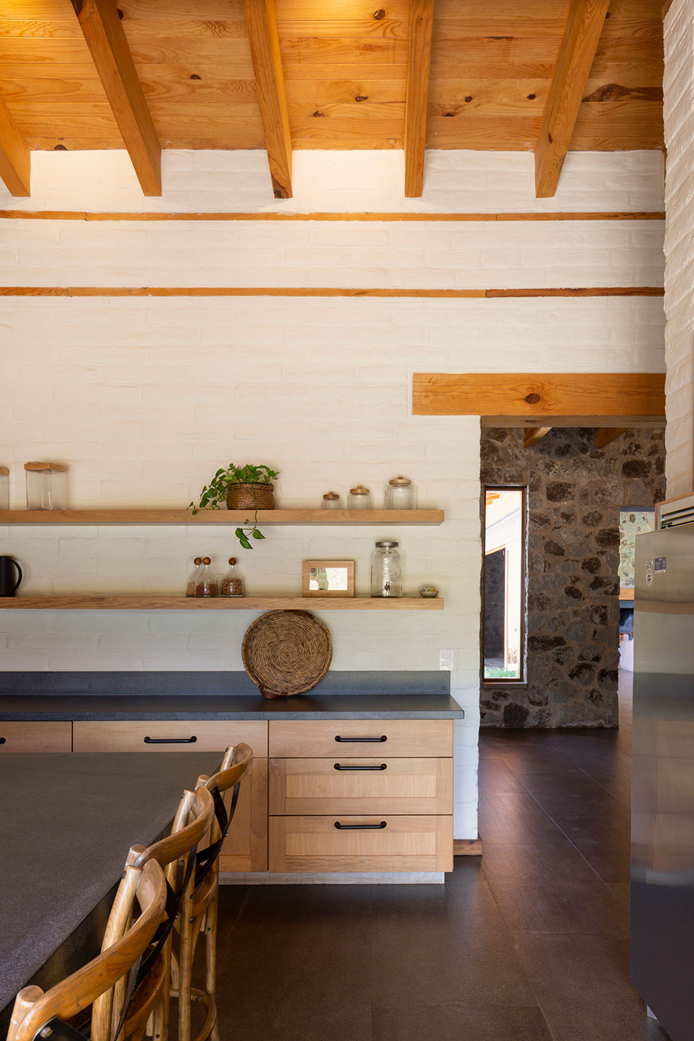 Ubicación: Fraccionamiento del Jagüey Este terreno, ubicado en un valle con vistas a la presa, al bosque colindante, y al fondo el volcán y el nevado de Colima, ofrece un entorno natural impresionante. Casa M fue diseñada en una sola planta, aprovechando la extensión del terreno para que todas las habitaciones y áreas comunes disfruten de vistas espectaculares hacia la presa, el volcán y el nevado. La casa incluye espacios amplios y abiertos que permiten una conexión constante con el paisaje circundante. La decoración interior combina elegancia y confort, complementando perfectamente la serenidad y belleza del entorno exterior. El paisajismo añade un toque natural que realza la arquitectura de la casa, creando un ambiente de tranquilidad y armonía. Un detalle distintivo de Casa M es la inclusión de caballerizas en un costado de la propiedad, adaptándose a las necesidades de la familia y su amor por la equitación. Casa M es un claro ejemplo de cómo un diseño bien planificado puede maximizar las cualidades de un terreno excepcional, proporcionando a sus habitantes una conexión constante con la belleza natural que los rodea. CASA M